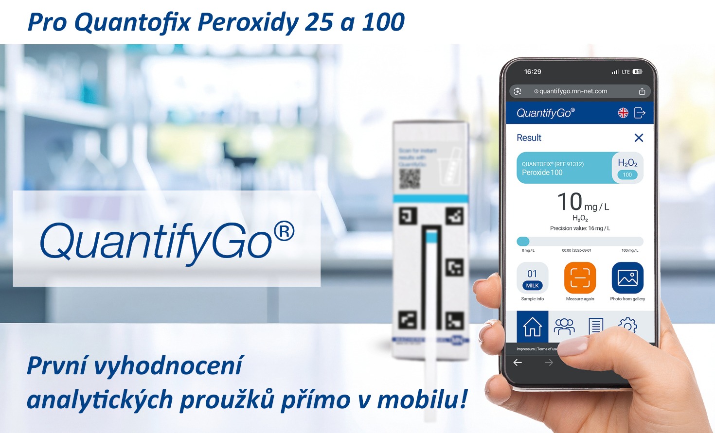 analytické testovací proužky, kolorimetrické sady a kufříkové přenosné laboratoře pro rychlé stanovení